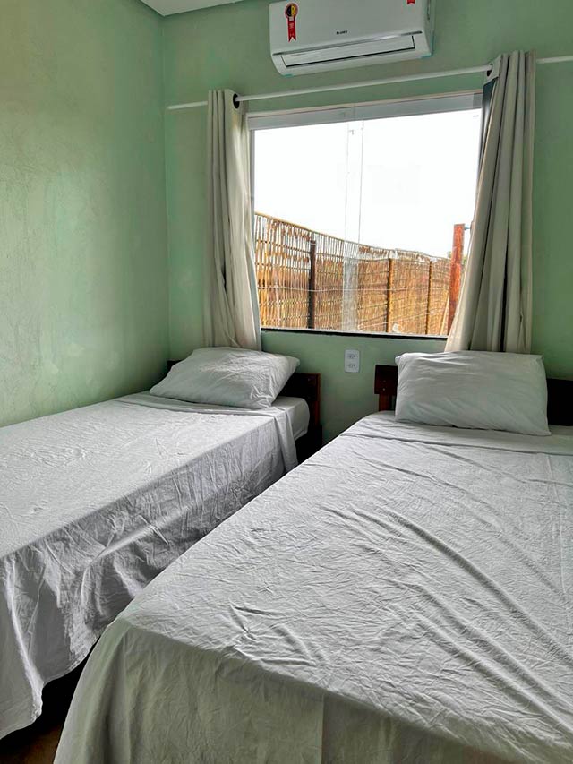 Os flats estão a 15min de caminhada até o mar. São ideais para acomodar famílias de 6 (para um flat) a 18 pessoas (para os tês flats). Possui Wi-Fi, TV com várias opções de streaming, ar-condicionado nos quartos e cozinha bem equipada. Ducha maravilhosa e também varanda para descansar na rede vendo a área verde. Fica a minutos de carro das principais piscinas naturais de Taipu de Fora.