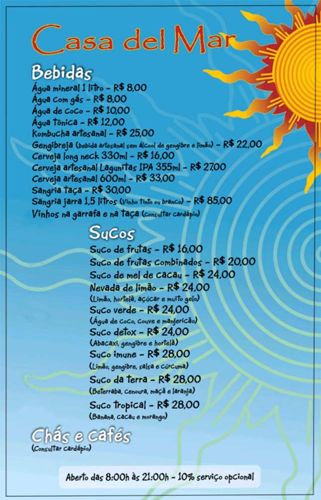Localizado em frente ao mar, o charmoso restaurante de madeira é um dos grandes atrativos da Casa del Mar. Cuidando da alimentação, usando produtos orgânicos, de agricultores da região, bem como de sua própria horta, sempre elaborados com azeite de oliva extra-virgem e muito amor. Oferece desde um equilibrado e delicioso café da manhã, até diferentes pratos da culinária nacional e internacional.