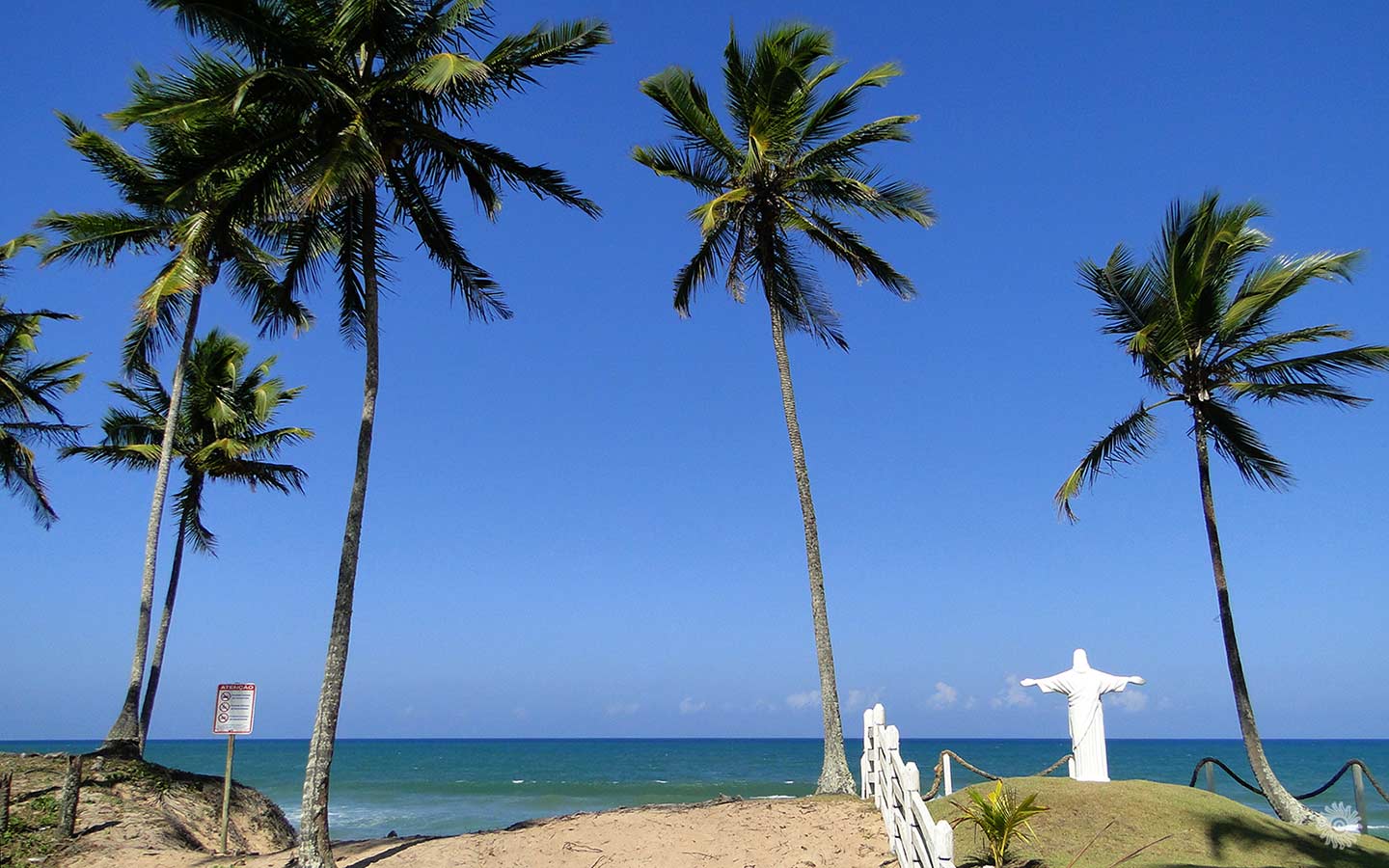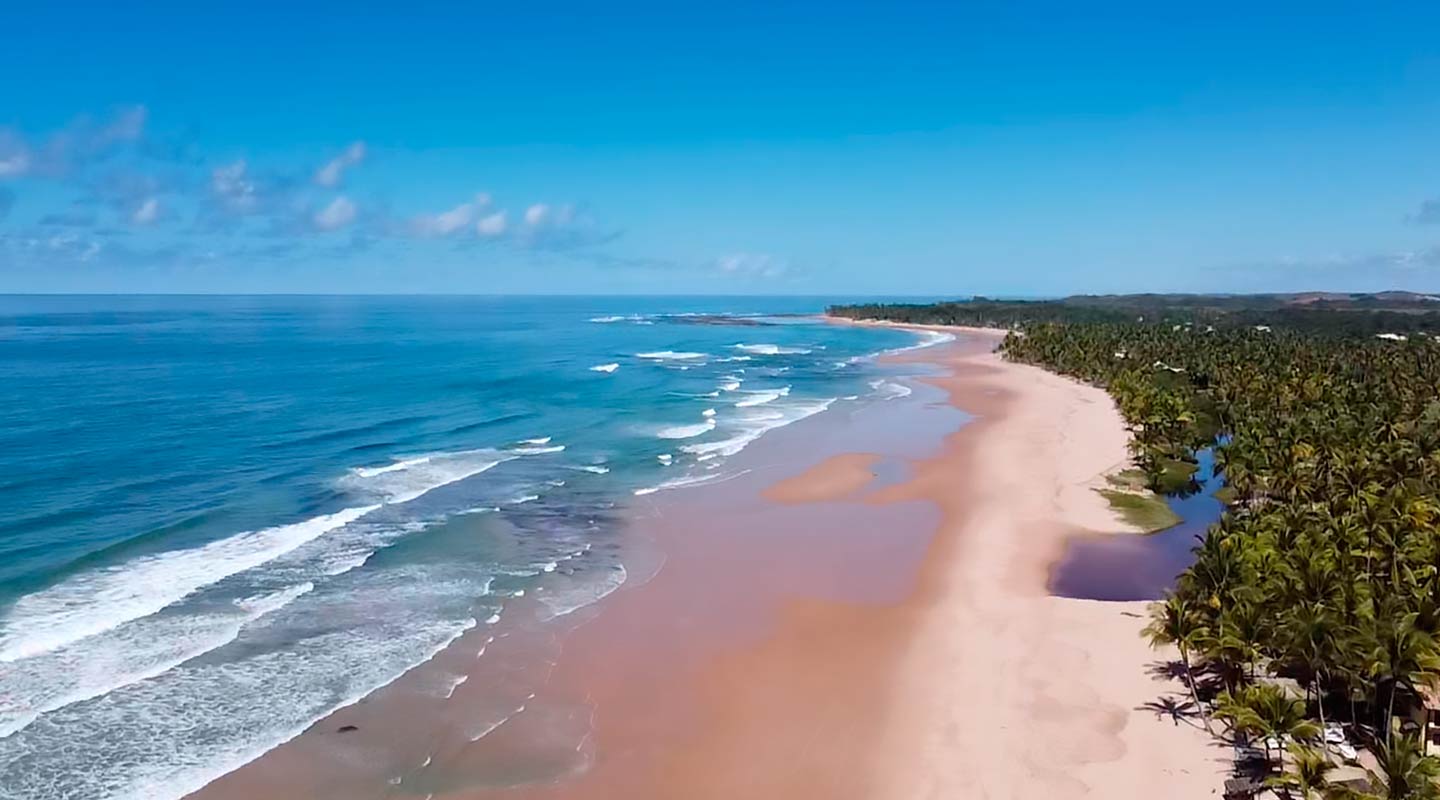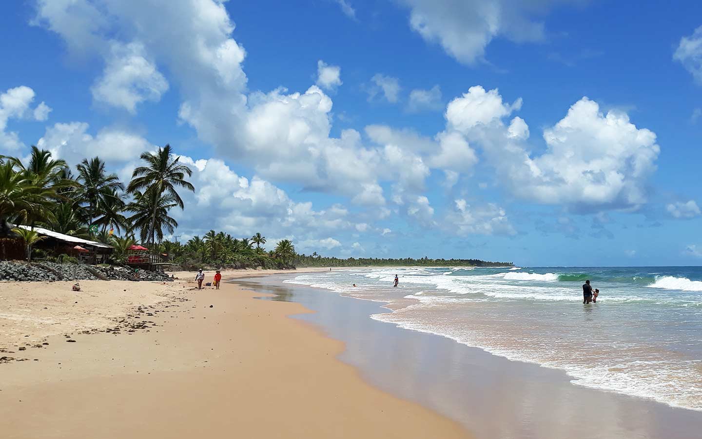 É uma praia de mar aberto, com ondas fortes, areia grossa e clara e coqueirais. Possui hotéis e pousadas e casas para temporada. Muito extensa, a praia é marcada pela presença de recifes que surgem da água na maré baixa, formando piscinas naturais. É o início de uma sucessão de longas praias interligadas que vai até a praia do Pontal, em Itacaré, a 50km ao sul.